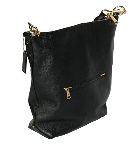 - Refined pebble leather Inside zip pocket Zip-top closure, fabric lining Outside zip pocket Adjustable strap with 19″ drop for shoulder or crossbody wear 12 1/4″ (L) x 12 1/2″ (H) x 3 3/4″ (W)