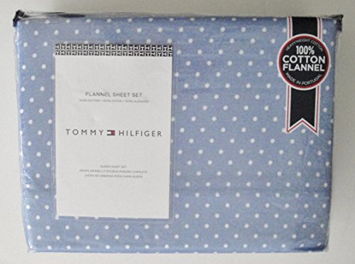 Tommy Hilfiger Flannel Sheet Set - Blue with White Dot - Queen