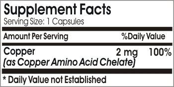 Studio : PureControl Supplements Publisher : PureControl Supplements Binding : Health and Beauty Product Description Copper aids in the formation of bone, hemoglobin, and red blood cells, and works in balance with zinc and vitamin C to form elastin. DIRECTIONS: For adults, take one (1) capsule daily, preferably with a meal. 0
