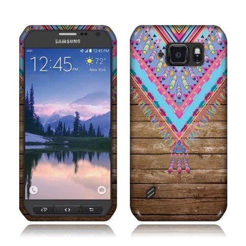 NextKin Samsung Galaxy S6 Active G890 Flexible Slim Silicone TPU Skin Gel Soft Protector Cover Case - Pink Aztec Chevron Feather on Wood