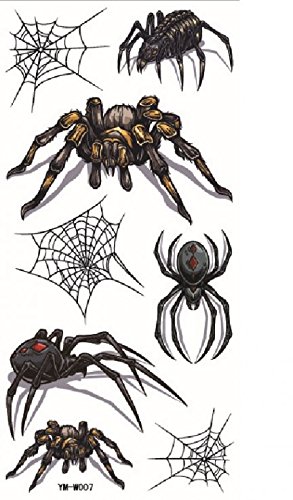 Grashine new design temporary tattoo stickers Terrible different spiders with spider web for Halloween party waterproof and non toxic fake temp tattoo sticker