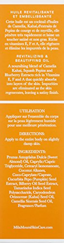 Revitalizing Body Oil is a superbly nourishing and non-greasy dry oil that feels like silk on the skin. A moisturizing blend of Camelia Kahai, Squash Pepins and blueberry extracts rich in Vitamins E, F and A quickly absorb into the layers of the skin. Impurities are eliminated as the skin regenerates, leaving a satiny finish.Feature