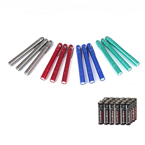 EverBrite 12-pack Aluminum LED Penlight Flashlights with Clip Batteries Included