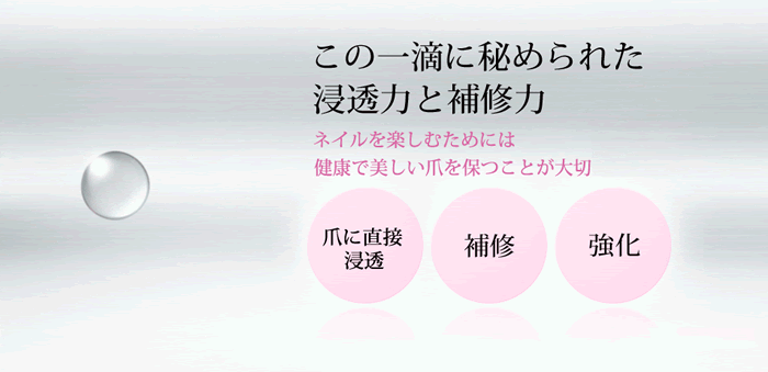 | 使用方法 | 清潔で乾いた爪に薄く塗布してください。 ※水溶性のため、長時間水にふれない時(就寝前など)のご使用が効果的です。 |
