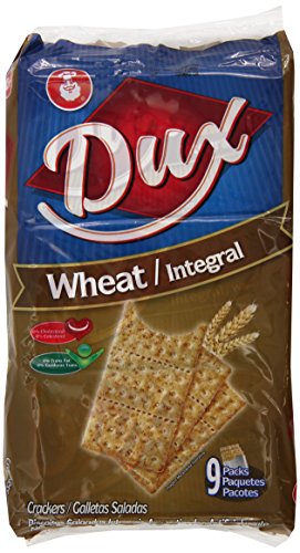 -. Binding : Grocery -. Brand : Dux -. Department : Latin and Mexican Food -. EAN : 0047416051288 -. Feature : Healthy cracker free of trans fat and cholesterol / High content of fiber for those that look for alternatives to improve their digestive health / Great with cheese, dips and deli meats -. IsAdultProduct : 0 -. Label : Dux -. Manufacturer : Dux -. Model : Dux Wheat -. NumberOfItems : 1 -. PackageQuantity : 1 -. ProductGroup : Grocery -. ProductTypeName : GROCERY -. PublicationDate : 2014-08-08 -. Publisher : Dux -. ReleaseDate : 2014-08-08 -. Size : 8.82 Ounce -. Studio : Dux -. Title : Dux Wheat Crackers, 8.82 Ounce -. UPC : 047416051288