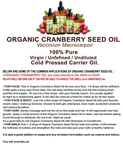 -. Title : ORGANIC CRANBERRY SEED OIL 100% Pure / Natural / Undiluted/ Virgin. 0.5 fl.oz -15 ml. Skin, Body, Hair and Nail Care.