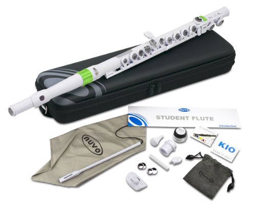 Nuvo N210SFGN Student Flute Kit with Straight Head, C, Foot, Case & Accessories , White/Green