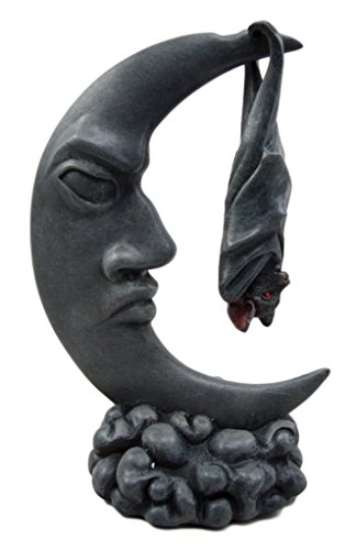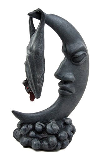 -. Feature : This sculpture is 8" tall, 5.5" wide and 4" deep approximately. It comes in two parts, the moon and the bat. / The sculptures are made of designer composite resin, hand painted and polished / We have heard of cows jumping over the moon or the flying hog, but you have not heard of the Bat hanging over the moon have you? This is a cool masterpiece that comes in two beautiful parts; 1. The magical crescent moon 2. The sleeping bat. It will be an awesome decor to your office, study room, shelves and what have you! / This is an Atlantic Collectible's exclusive collection. Beware of knockoff imitation pieces sold by unlicensed sellers.