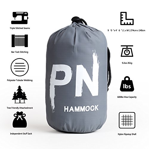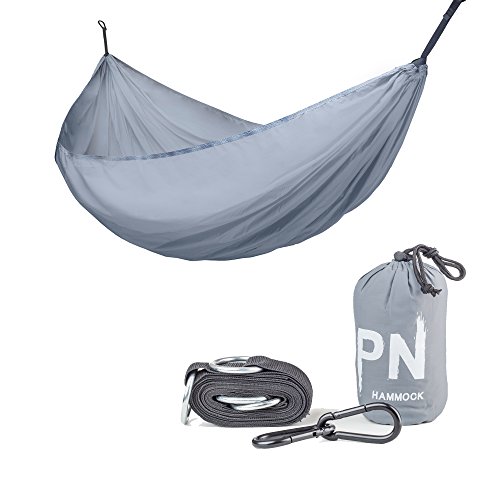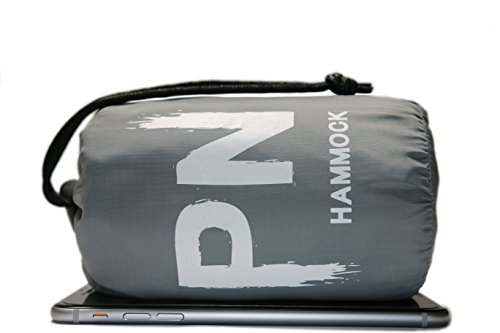 YOU WON’T FEEL IT IN YOUR BAG- Ultralight Portable hammock weighs just 9.2 ounces (22 ounces with tree straps and carabiners). Folds into Compression Bag that fits in your hand like an iPhone Plus. But still fully deploys 108 inches in length and 55 inches wide providing a comfortable, one-person suspended bed.