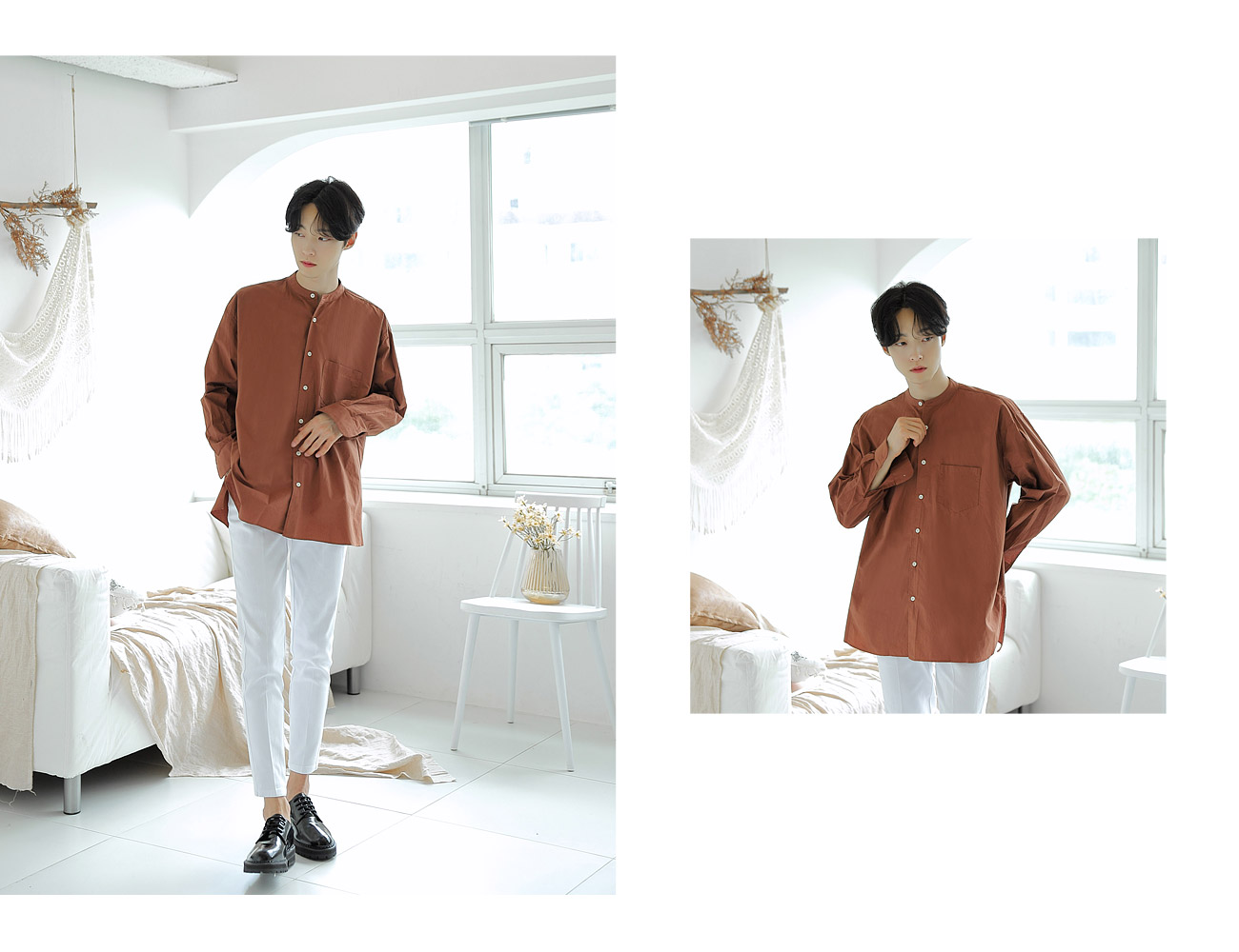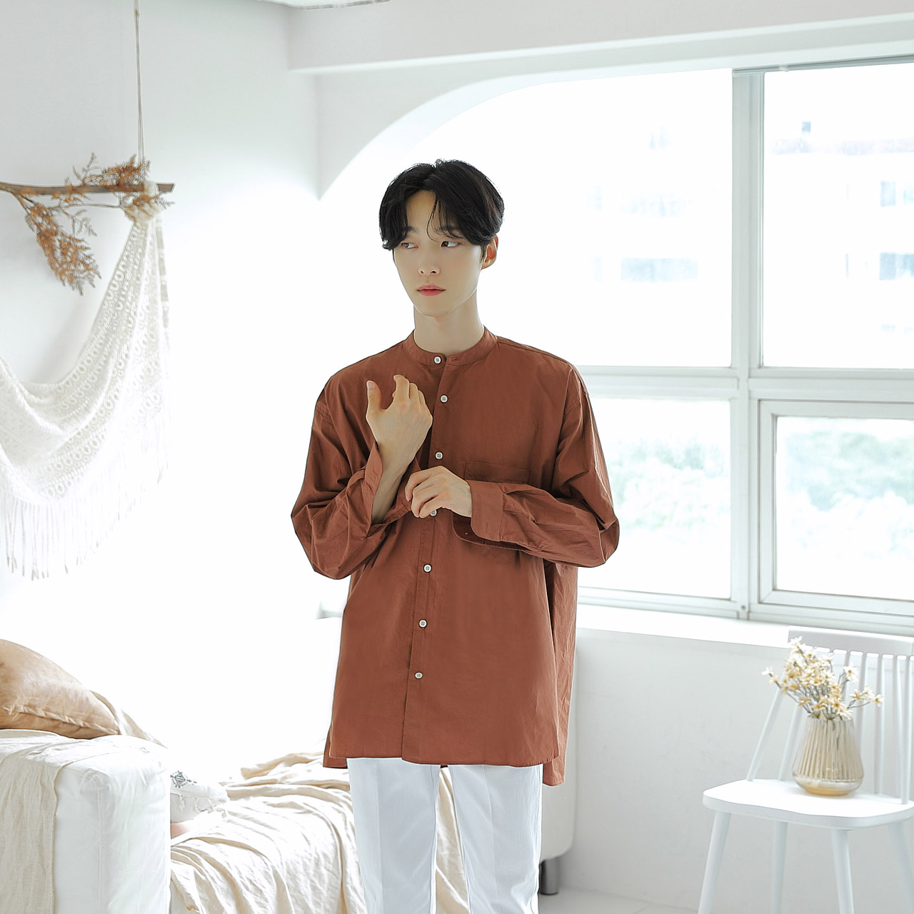 부드럽고 젠틀한 분위기를 풍기는 헨리넥 오버핏셔츠입니다.FABRIC INFO
