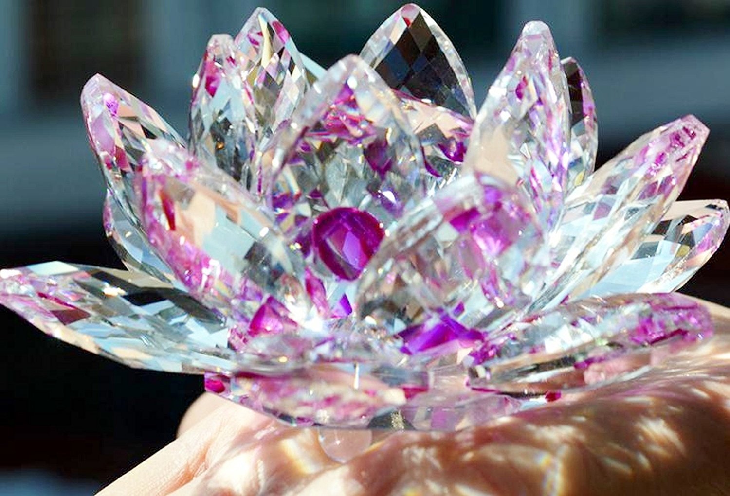 It is a very elegant lotus flower ornament using beautiful crystal glass.