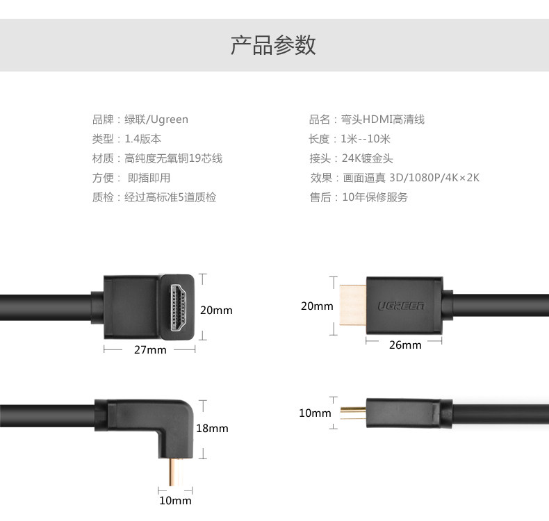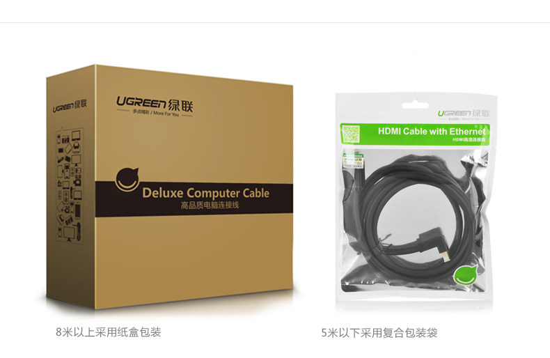 绿联HDMI线 1.4版90度 弯头高清数据连接线机顶盒接电视1米3米5米