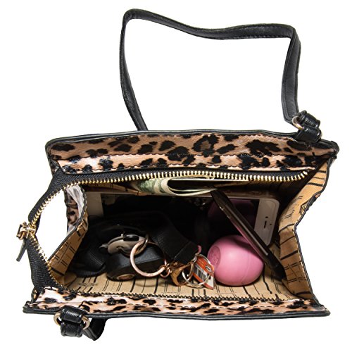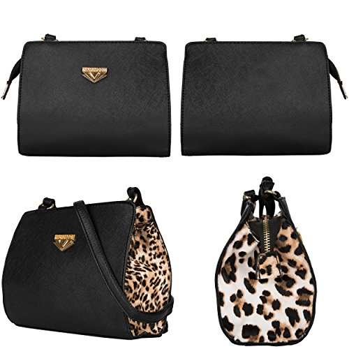-. Brand : Vangoddy -. ClothingSize : Small -. Color : Black -. Department : Womens -. EAN : 8907478134126 -. Feature : Matte Black stylish PU Leather encasing from front to back, while its lateral sides feature a bold and daring leopard P.R.Int with a brushed finish / Interior features a soft fabric finish that will not scratch or harm your items and offers a slip pocket for added organization / Ideal for bringing essential items on the go and leaving the added bulk behind / Shoulder strap was stylized in excess for a chic couture look and can be adjusted depending on your wardrobe needs / Interior measures 7.75" X 6.25" X 3.25" | Strap Drop Measures: 22in Min / 25in Max -. NumberOfItems : 1 -. PackageQuantity : 1 -. ProductGroup : Shoes -. ProductTypeName : HANDBAG -. Size : Small -. Title : VanGoddy Arina Women's Small Leopard Crossbody Satchel Purse Bag