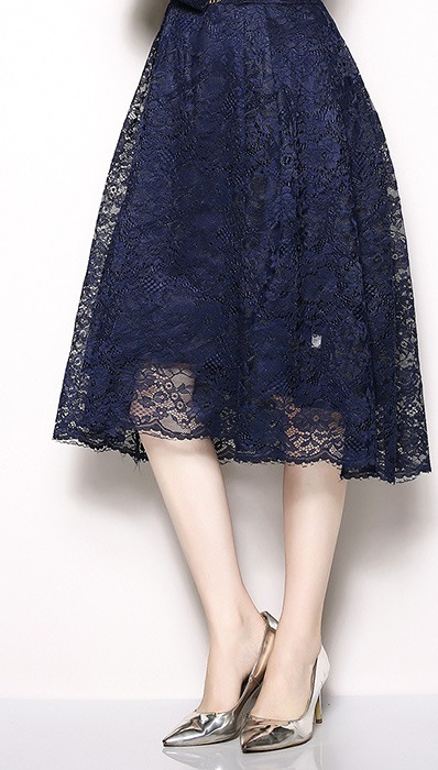 花柄のレースをたっぷりと使ったフレアスカートがとても上品な印象です。