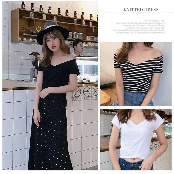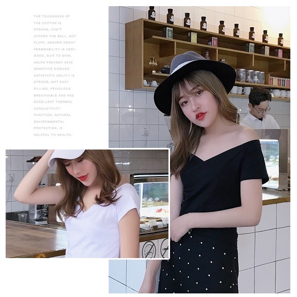 広く開いた胸元はちょっぴりセクシーにオフショルにしてもOK!