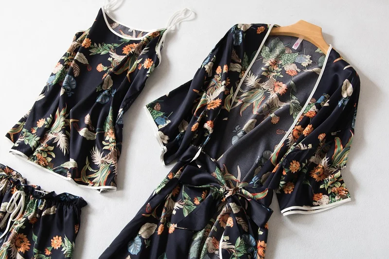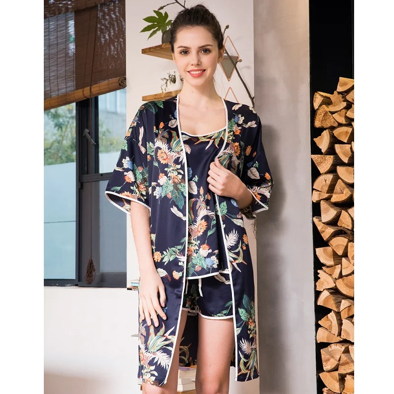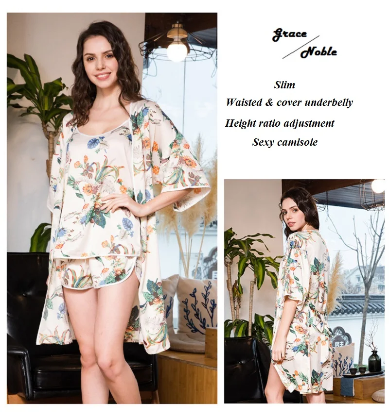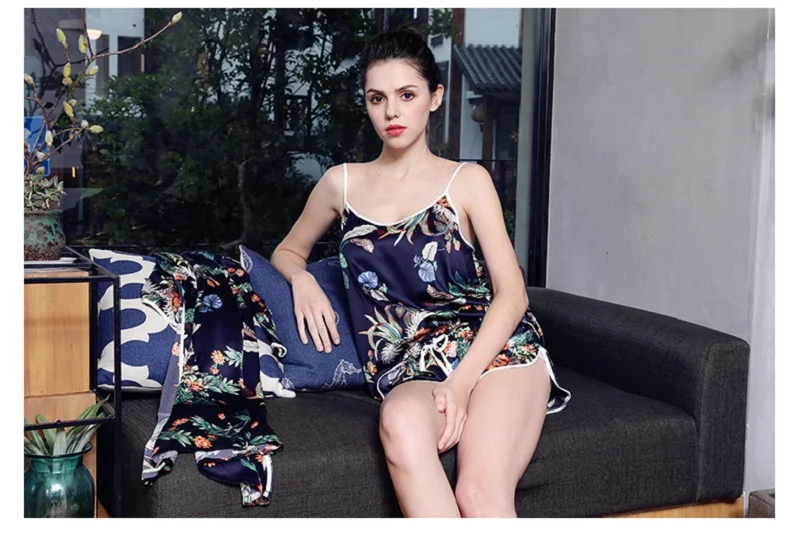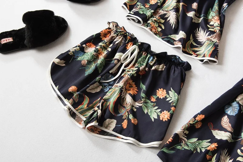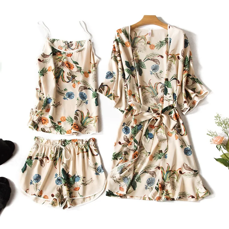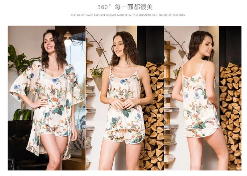 Item Name:Women Prints Silk-like Pajamas Sets 3Pcs Home Clothing