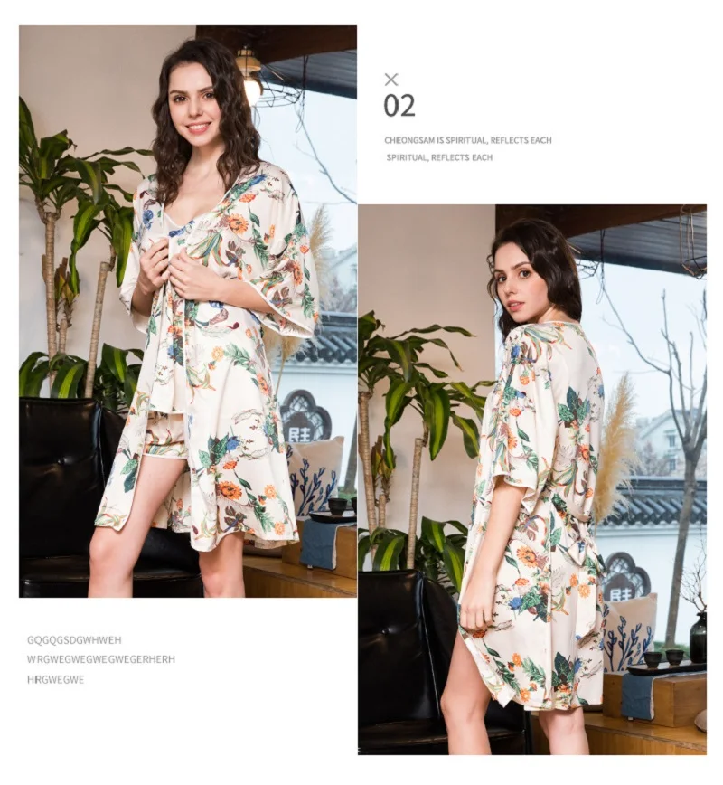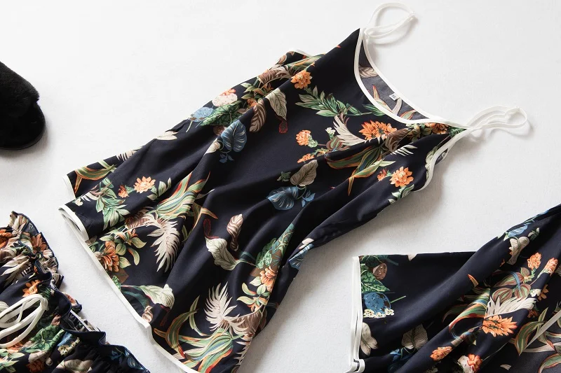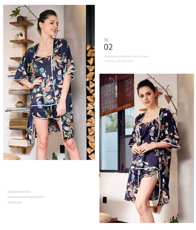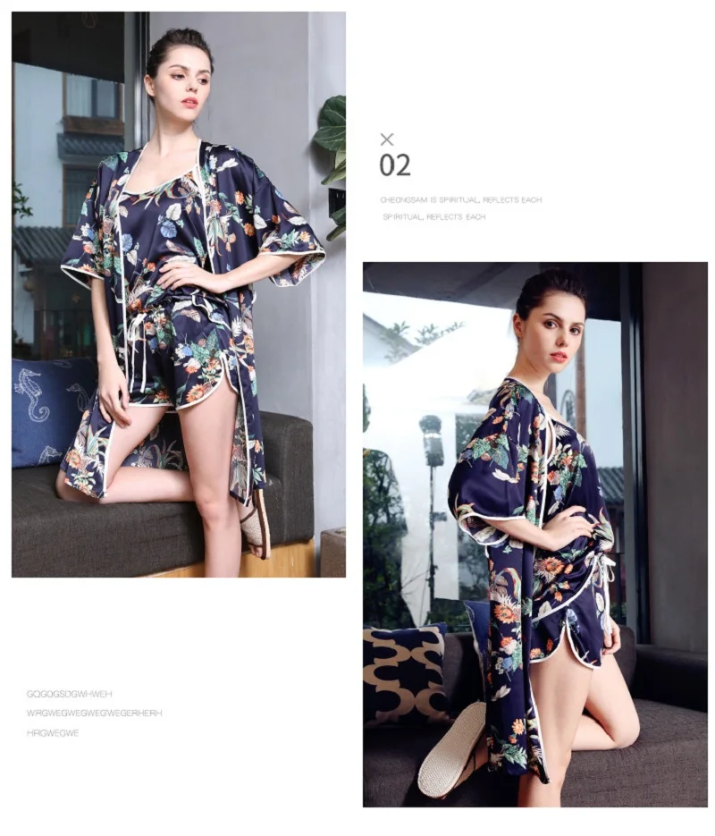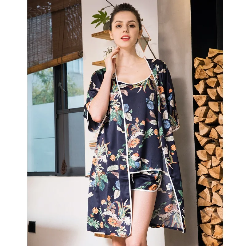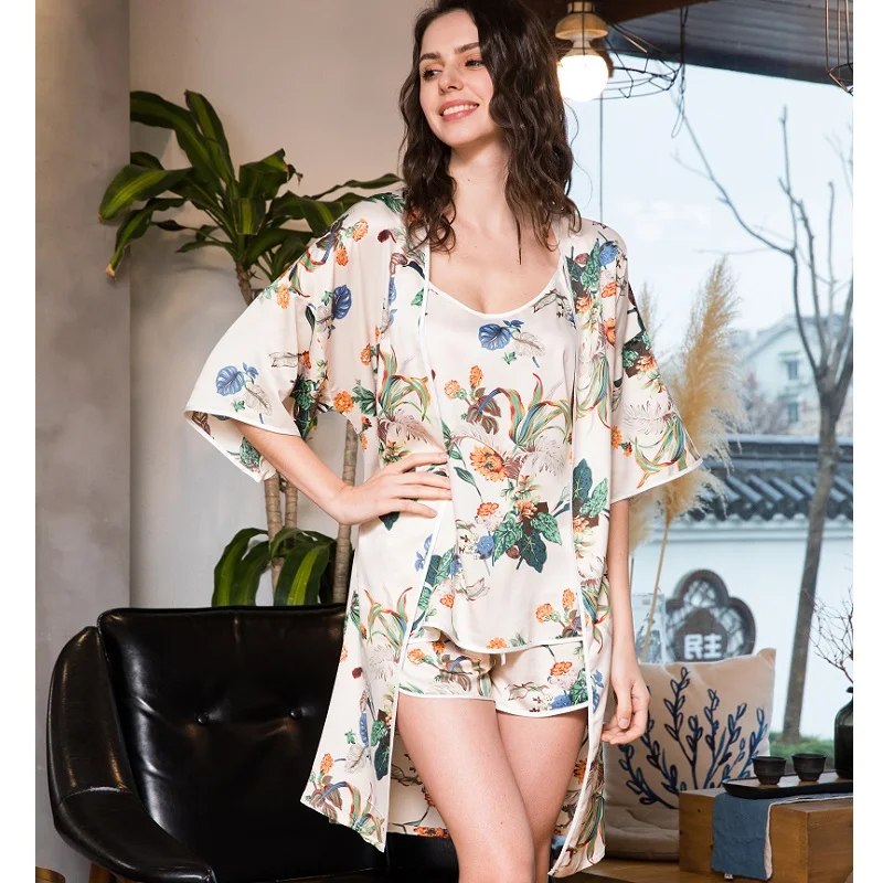 Item Name:Women Prints Silk-like Pajamas Sets 3Pcs Home Clothing