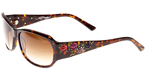 The Ed Hardy EHS Long Stem Roses Sunglasses is a beautiful fashionable sunglasses by Ed Hardy. The sunglasses features a light weight plastic frame with excellent abrasion resistance UV400 Protection Original Ed hardy graphic tattoo Roses design on temples with Swarovski crystal detail. comes with original embroidered artistic case cloth and certificate of authenticity.Feature