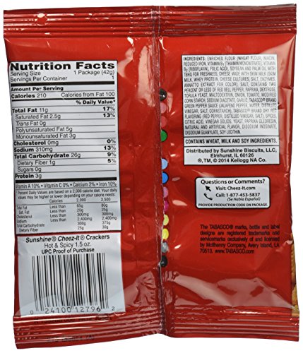Kellogg's Cheez-It Crackers, Hot and Spicy Tabasco, 1.5 Ounce (Pack of 60)