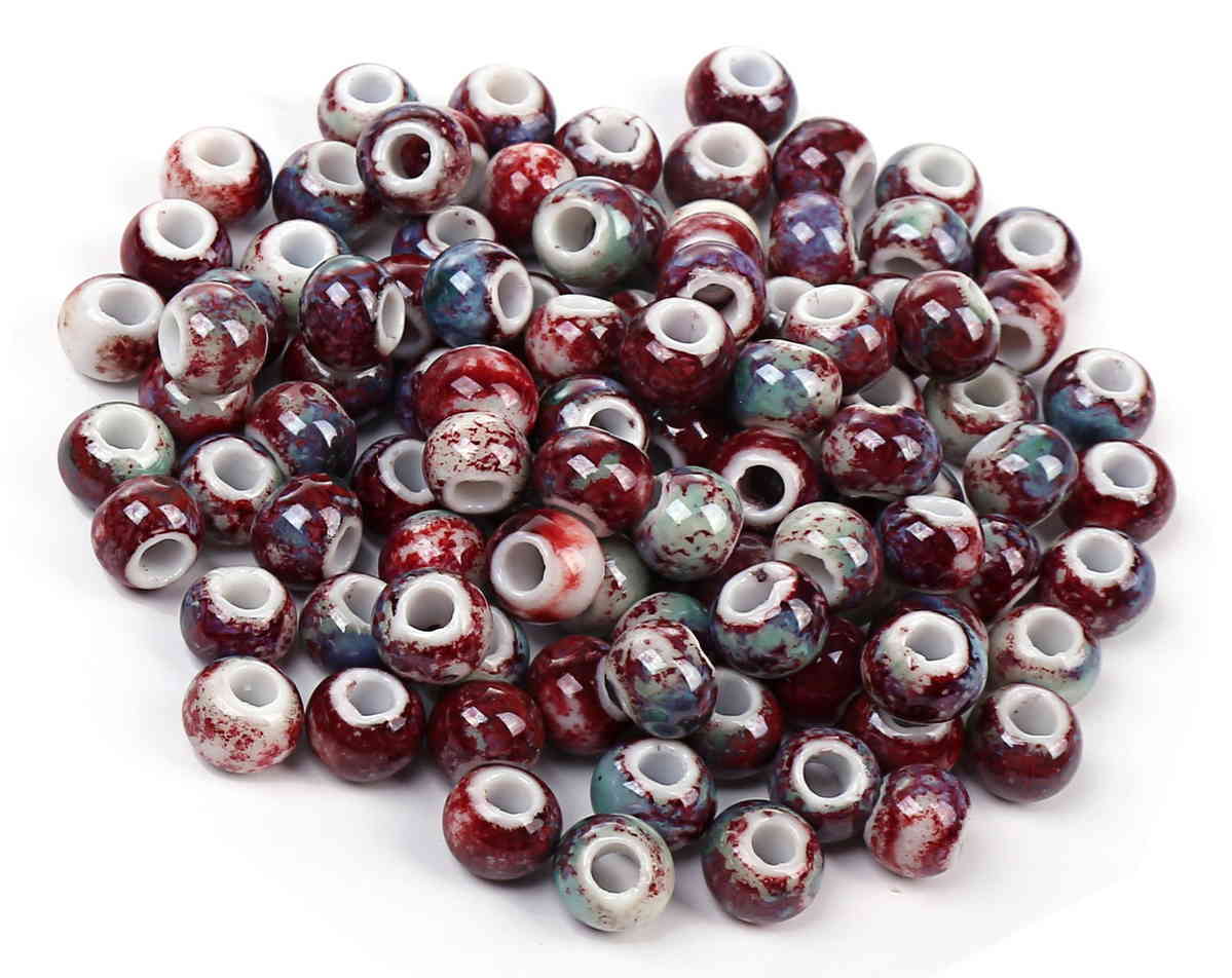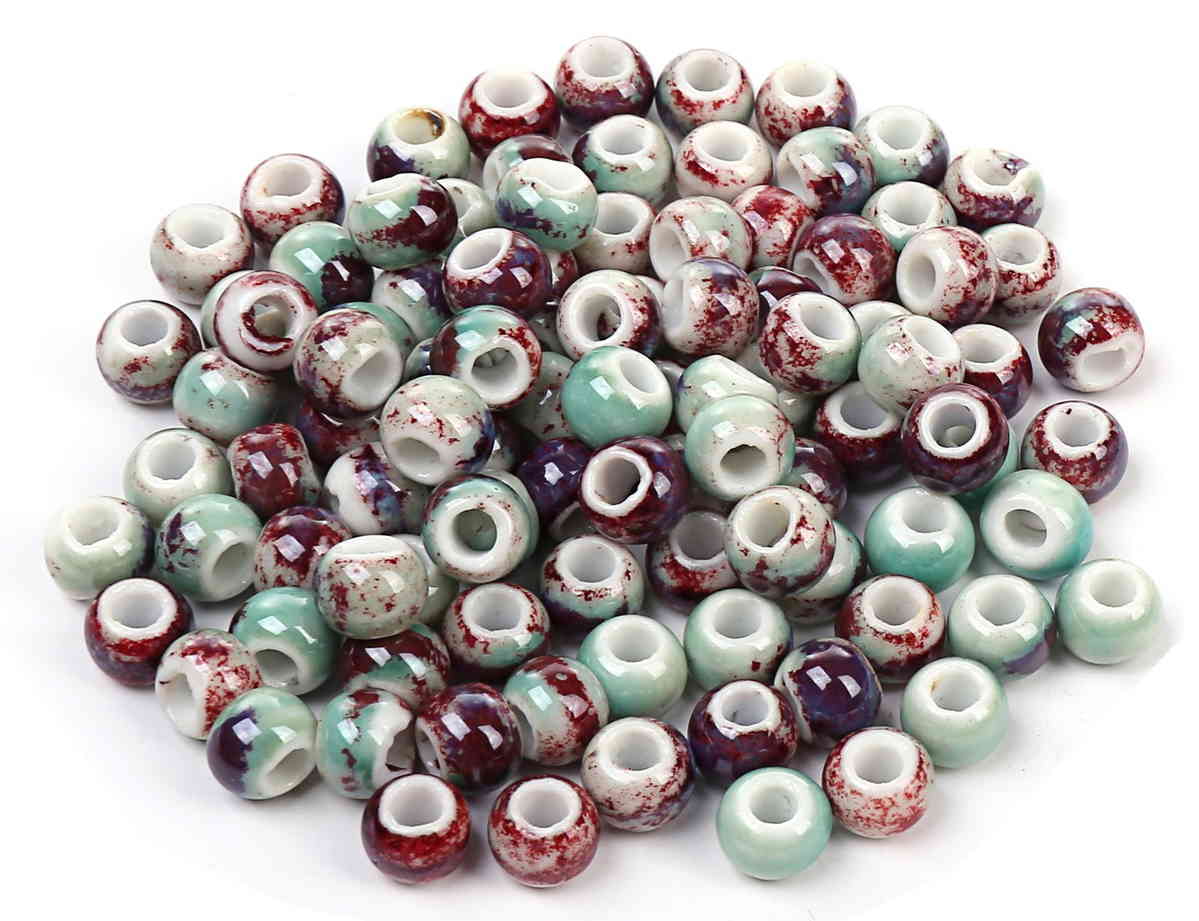 色合いの良い陶器ビーズが2色、それぞれ100個の詰め合わせです。