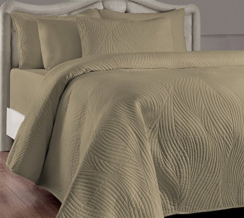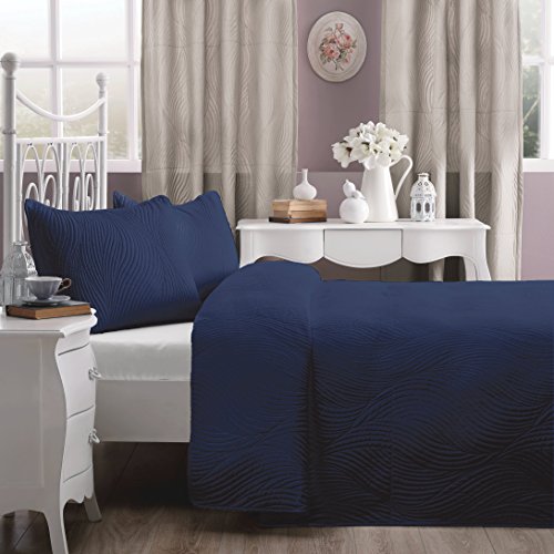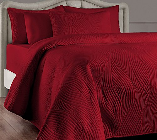 Quilt measures 104 by 90 inches; king pillow shams measure 20 by 36 inches each
