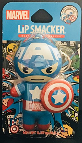 NEW!! Lip Smacker Marvel Collection Lip Balm with Key Chain Featuring - Captain America - Limited Edition! Perfect for any Superheros Fans - Red White & Blue-Berry Flavored - Collectible