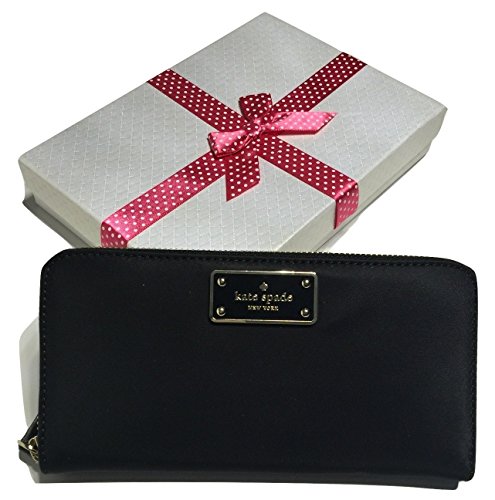 -. Brand : kate spade new york -. Color : Black -. Department : womens -. EAN : 0780456167341 -. Feature : Bagity is the exclusive authorized seller for this bundled gift boxed Kate Spade Blake Avenue Black Neda Clutch Wallet WLRU2356 with a Gift Box / Classic nylon with gold tone hardware / Zip around style wallet with KS nameplate on front and open slip pocket on back / Leather and fabric interior with 12 card slots and multiple full length bill compartments, Center zippered coin compartment / Measures approximately 7.75" (L) x 4.25" (H) x 1" (W). Comes with a beautiful Gift Box -. Model : WLRU2356 -. ProductGroup : Shoes -. ProductTypeName : HANDBAG -. Size : small -. Title : Kate Spade Blake Avenue Black Neda Clutch Wallet WLRU2356 with Gift Box -. UPC : 780456167341 Kate Spade Blake Avenue Black Neda Clutch Wallet WLRU2356 with Gift Box