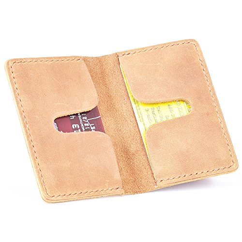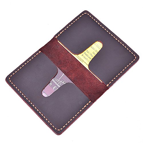 -. Feature : 100% HANDMADE FASHION GENUINE LEATHER.This Card Holder is Handmade without machine,cut the leather and saw it is by my hand.For all processes takes about 2 hours to make 1 piece. / MADE FROM HIGH QUALITY CRAZY HORSE LEATHER. For this high quality leather, the card holder will last for years, waxed cotton thread, thick genuine leather makes the wallet compact and durable, it great replaces a bulky wallet, 2 roomy card slots will hold at least 10 credit cards. and also Small enough for a front pocket, it won't look like that you are bringing a brick in your pocket / COMPACT, FASHION AND PRACTICAL. Apart from being very strong and durable, the wallet will be much more beautiful over time, Please note that each hide of leather will vary slightly in color, texture and patina - making each item truly one-of-a-kind / A PERFECT GIFT CHOICE. This wallet is very retro, the feel and color of the leather is amazing, it is a good gift for your friends,family, the card holder is good gift for Christmas, Father's Day, Graduation Day, etc. / 10 YEARS WARRANTY.this card holder is supposed to last for years, if any damage for this one, you can contact us ,we will give you a satisfactory solution