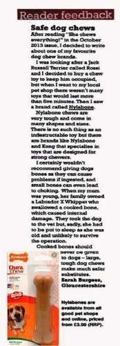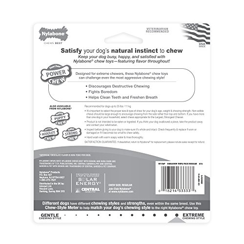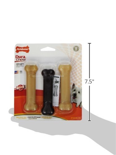 -. Binding : Misc. -. Brand : Nylabone -. Feature : Specifically designed bone-shaped Nylabone dog treats for powerful chewers / Special Nylabone nylon chews that help to control tartar and promote good dog dental health / Value pack includes original and carob (chocolate) flavor -. Label : Nylabone -. Manufacturer : Nylabone -. MPN : NT106P -. PackageQuantity : 1 -. PartNumber : NT106P -. ProductGroup : Pet Products -. ProductTypeName : PET_SUPPLIES -. Publisher : Nylabone -. Studio : Nylabone -. Title : Nylabone Dura Chew Pooch Pacifier Chew Bone Value Pack