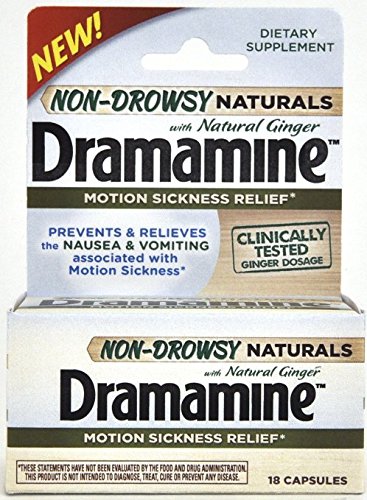-. Title : Dramamine Non-Drowsy Naturals with Natural Ginger, 1 Pack of 18 Capsules (Pack of 2)