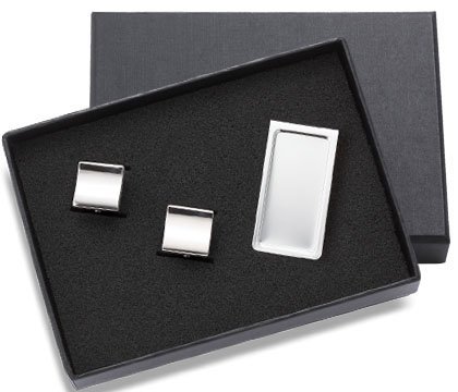 -. Title : Aeropen International MCU-01 Metal Chrome Money Clip and a Pair of Cufflink in Black Gift Box Set