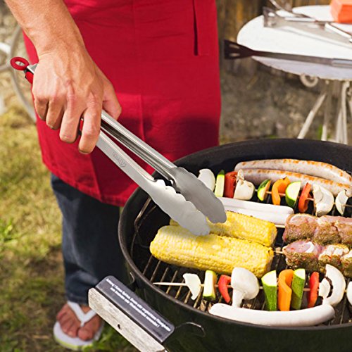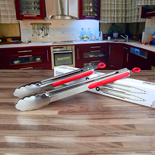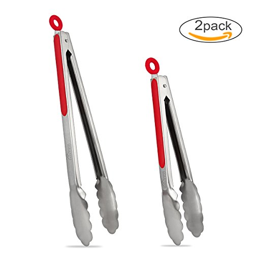 Studio : Hotec Publisher : Hotec Product Description This restaurant quality kitchen tongs set comes with a 9" standard tong for food serving and a 12" large tong for grill or BBQ. Function Use these cooking tongs to turn hot food or cold food with ease while keeping your hands away from oil splatter and fire. 12" is great for grilling and 9" is perfect for kitchen task. Material These kitchen tongs are made of food level stainless steel, durable and like new forever. The handle is cushioned with silicon to ensure good grip. Design The locking mechanism is super user friendly, pull for lock and push for unlock. The spring that keeps the kitchen tongs open is super heavy duty and will open and close many times. A thumb rest allows your thumb to be in the perfect position to help guide the cooking tongs where they need to go. The tongs also come with a hanging loop, simply hang them with the hanging loop after use or put in the drawer when lock closed to save space. Packing content 9" standard kitchen tong x 1 12" large kitchen tong x 1 If you have any questions, please feel free to ask. We will get back to you within 24 hours 0