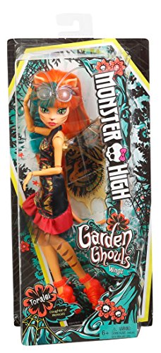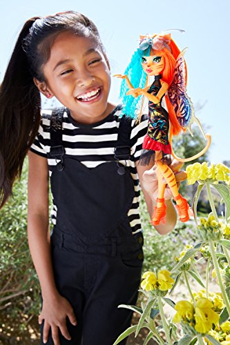 The Monster High Garden Ghouls winged dolls help imaginations take flight! Gore-geous moth wings have a colorful, animal-inspired print to help Toralei doll enjoy fantastic flights of fancy. The daughter of werecats is purr-fect in an outfit that highlights her signature style and complements the wings. Fly-tastic accessories include red shoes and transparent eyeglasses with antennae and bug-eye effect. Look for monsterrific touches like Toralei doll's orange and blue hair and animal stripes. Young ghouls will love discovering what makes them uniquely fantastic along with the beast friends from Monster High. Collect all of the Monster High Garden Ghouls dolls and accessories to grow your own gore-geous garden of fantastical fun (each sold separately, subject to availability). Includes Garden Ghouls Toralei doll wearing fashion and accessories, including wings. Doll cannot stand alone. Colors and decorations may vary.Feature