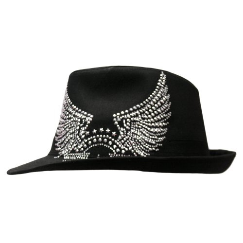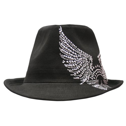 -. Binding : Apparel -. Brand : Luxury Divas -. ClothingSize : One Size -. Color : Black -. Department : womens -. Feature : 100% Cotton / Great for Men & Women Alike / H03198 -. Label : Luxury Divas -. Manufacturer : Luxury Divas -. Model : H03198 -. MPN : H03198 -. NumberOfItems : 1 -. PackageQuantity : 1 -. PartNumber : H03198 -. ProductGroup : Apparel -. ProductTypeName : HAT -. Publisher : Luxury Divas -. Size : One Size -. Studio : Luxury Divas -. Title : Luxury Divas Black Fedora With Rhinestone Eagle