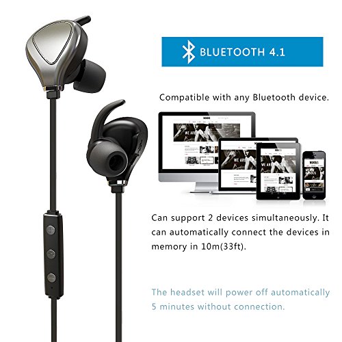 KINGWorld Wireless Earbuds V4.1 In-Ear Sport Bluetooth Headphones Headset for iPhone Samsung Galaxy and Android Phones