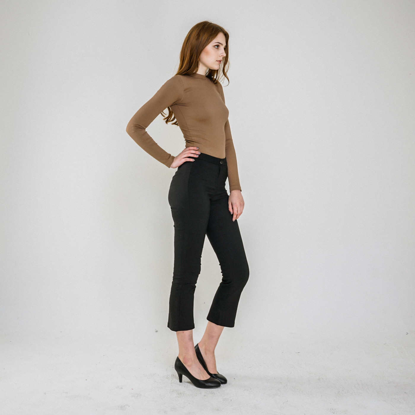 기모가 얇게 들어간 크롭스타일의 부츠컷 팬츠로 슬림해