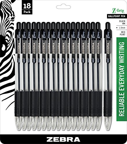 ZEBRA Z-Grip Retractable Ballpoint Pen, 1.0mm, Black Ink, 18 Pack (22218)