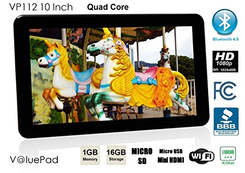 -. Title : Best Value HDMI ValuePad VP112-11 10.1" Quad Core Android 4.4.2 KitKat, Bluetooth 4.0, 1080P via HDMI, Two Scr Prot, 16GB Storage (2GB for apps), 1GB RAM, Dual Camera, Google Play