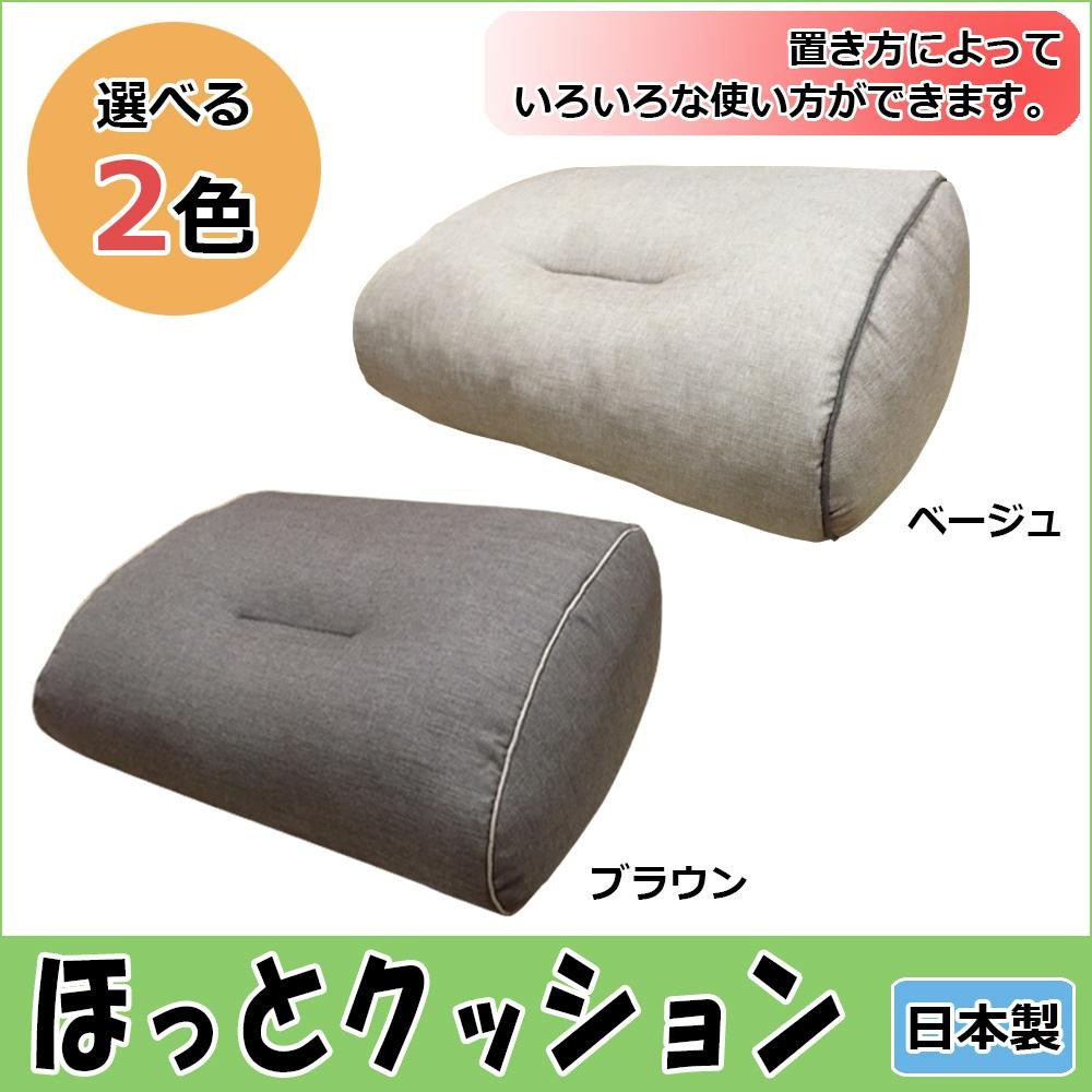背当て、枕、テレビ枕など置き方によっていろいろな場面で活躍出来るクッションです。ベージュとブラウンの2色からお選び頂けます。