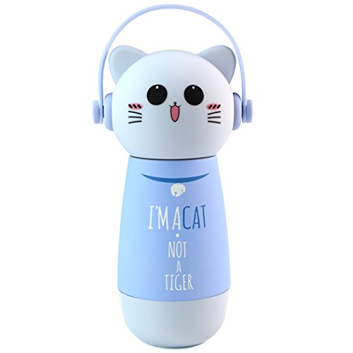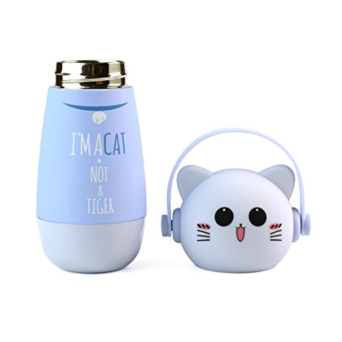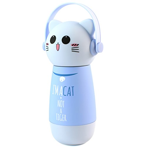 ZIIYAN Portable Stainless Steel Coffee Thermos Cute Cat Travel Mug Drinkware Water Bottle for Kids& Adults, 9oz, Blue