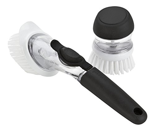 Good Cook Touch Soap Dispensing Nylon Kitchen Dish and Palm Brush Set (2 Pack), Black