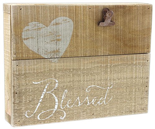 Honey & Me 10" Primitive Pallet Wood Block Sign with Photo Clip "Blessed"