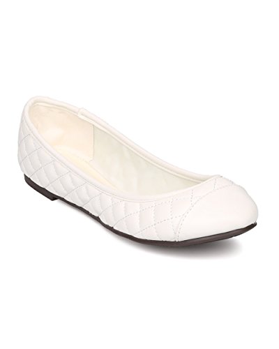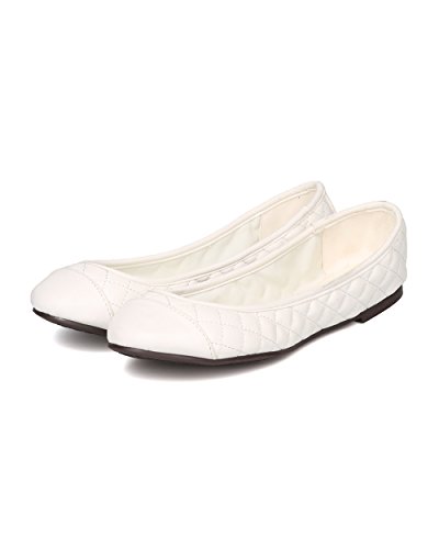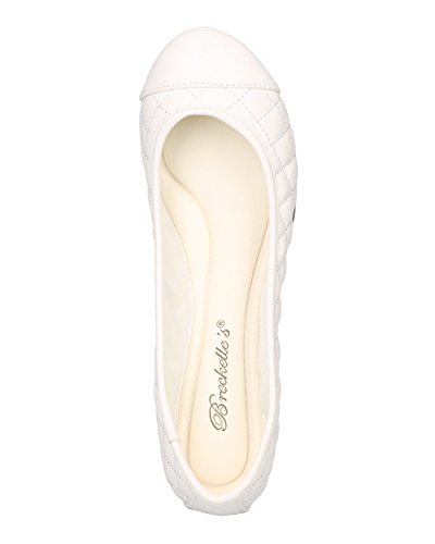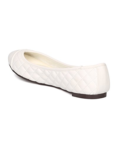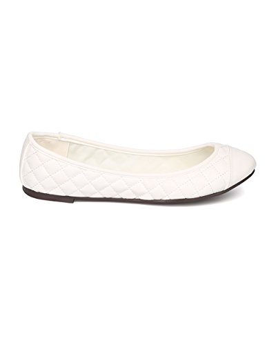 Breckelles FI14 Women Leatherette Capped Toe Quilted Ballet Flat - Off White