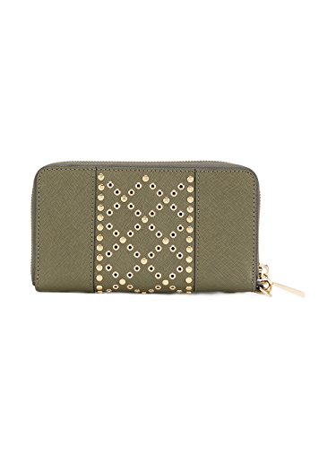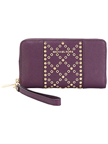 Product Description Indulge your glamorous side with the studded leather wristlet. Crafted from saffiano leather, this slim accessory showcases a dedicated phone pocket plus extra room for travel essentials. Toss this polished piece into your carryall for a shining moment. 0