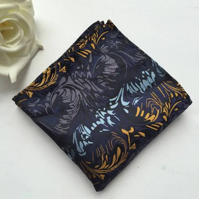 Ljt13-16 남성 에스코트 넥타이 포켓 스퀘어 세트 클래식 navyblue orange 꽃 페이즐리 실크 넥타이 넥타이 넥타이 세트 손수건 웨딩