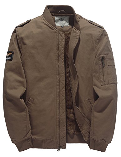 -. Binding : Apparel -. Brand : WenVen -. Color : Beige -. Department : mens -. Feature : Machine Washnable, recommend hand wash / Ribbed cuff and hem / Lined with soft polar fleece to provide extra warmth and comfort / Two hand pockets, one multi-function arm pocket and one inner pocket / Classic casual style bomber jacket perfect for everyday wear or wear to work -. ProductGroup : Apparel -. ProductTypeName : OUTERWEAR -. Title : WenVen Men's Winter Casual Bomber Jacket with Patches