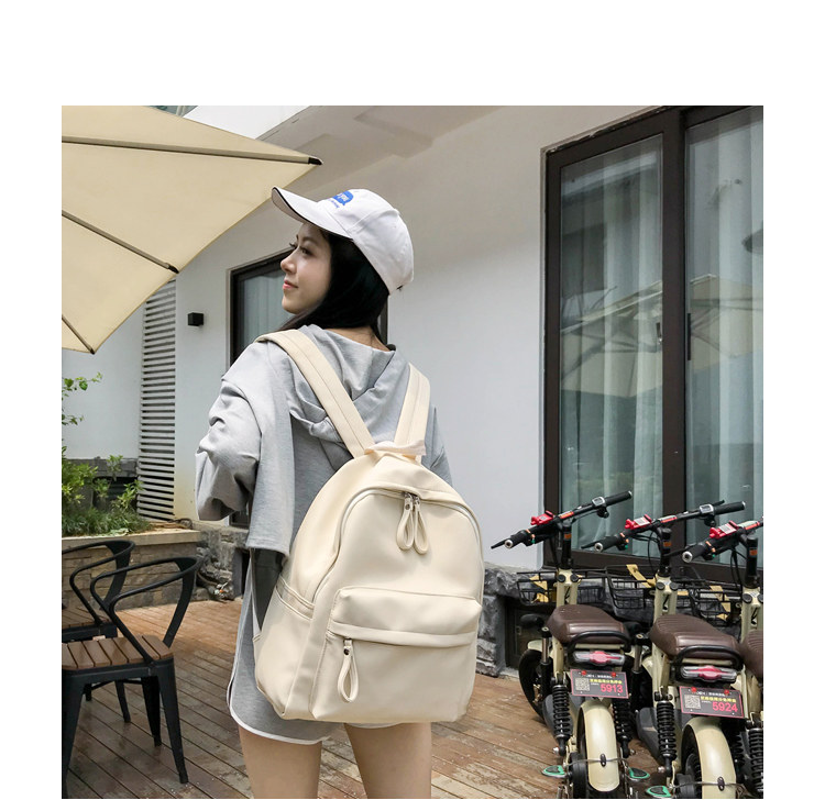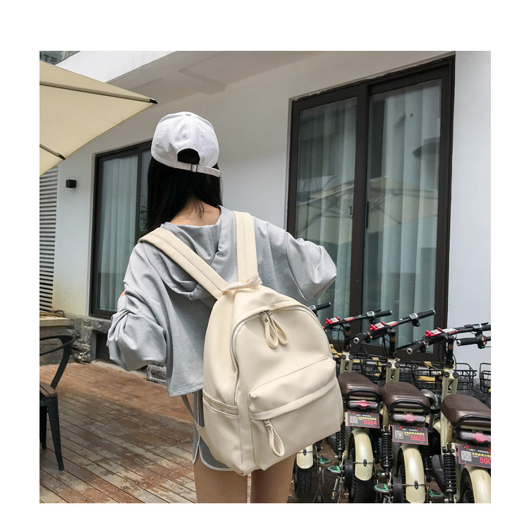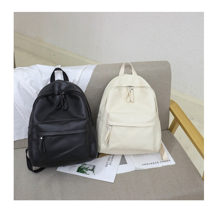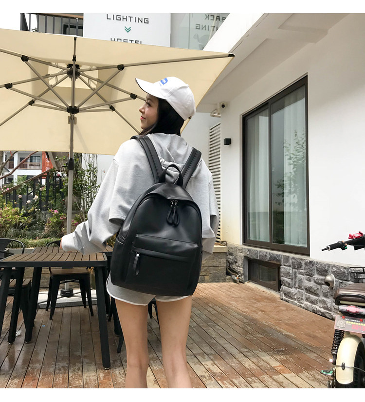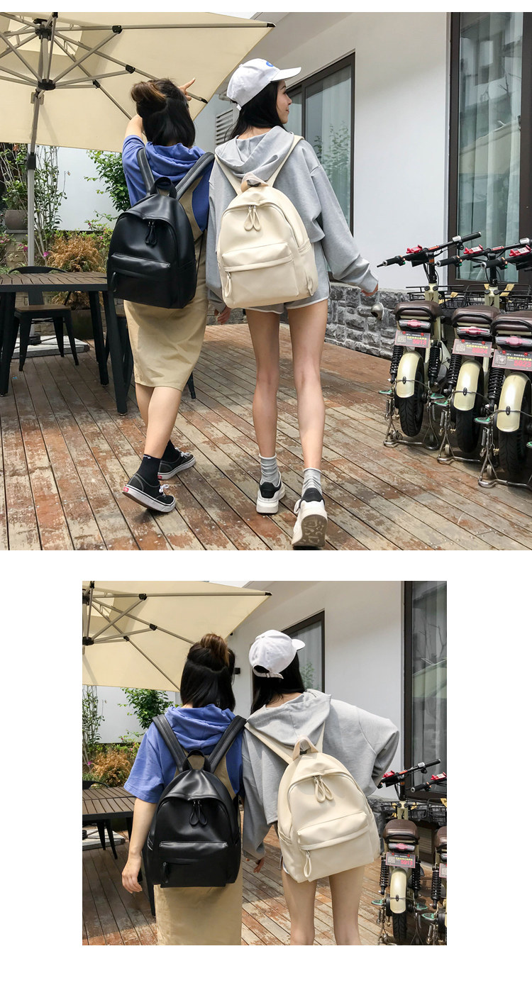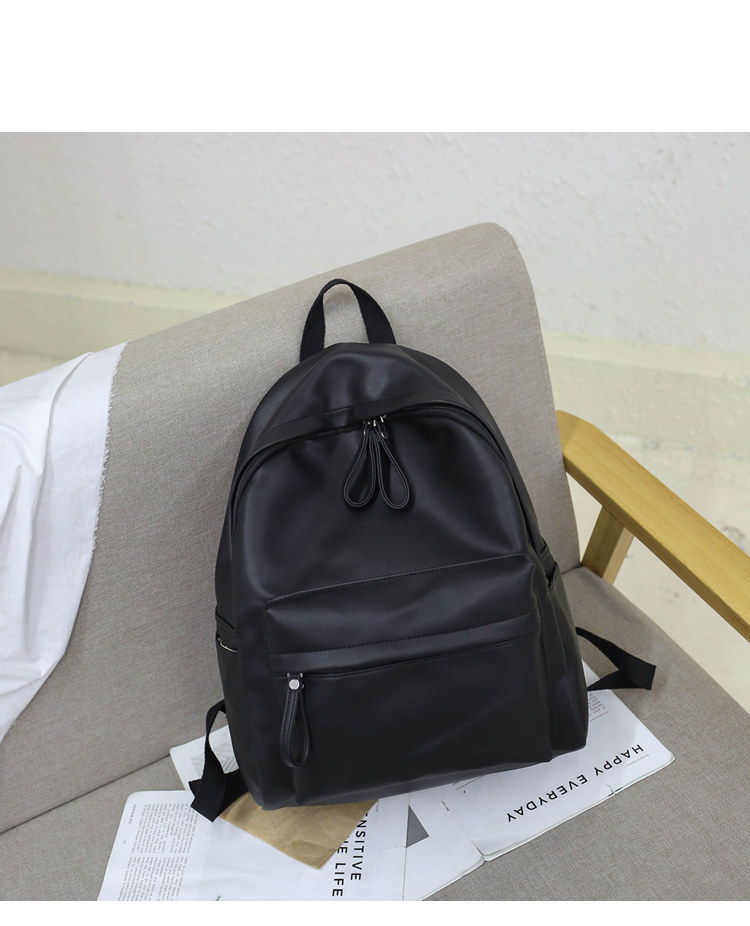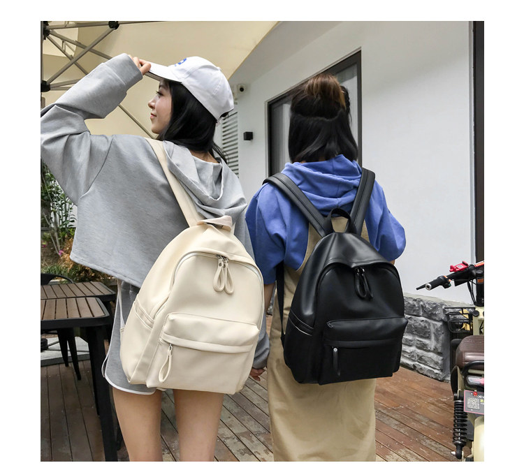 【有侧兜】【背面有拉链贴兜】纯色PU皮滑面双肩包,防水面料~