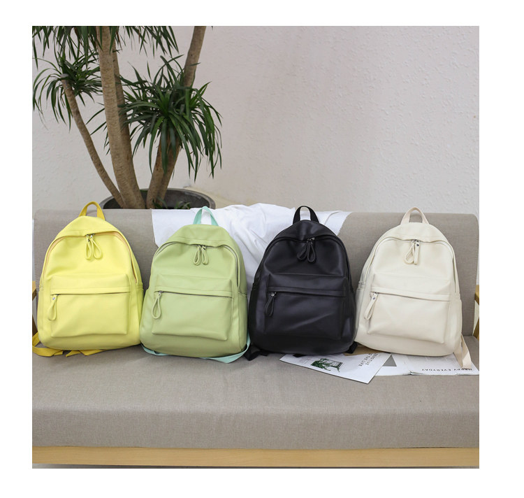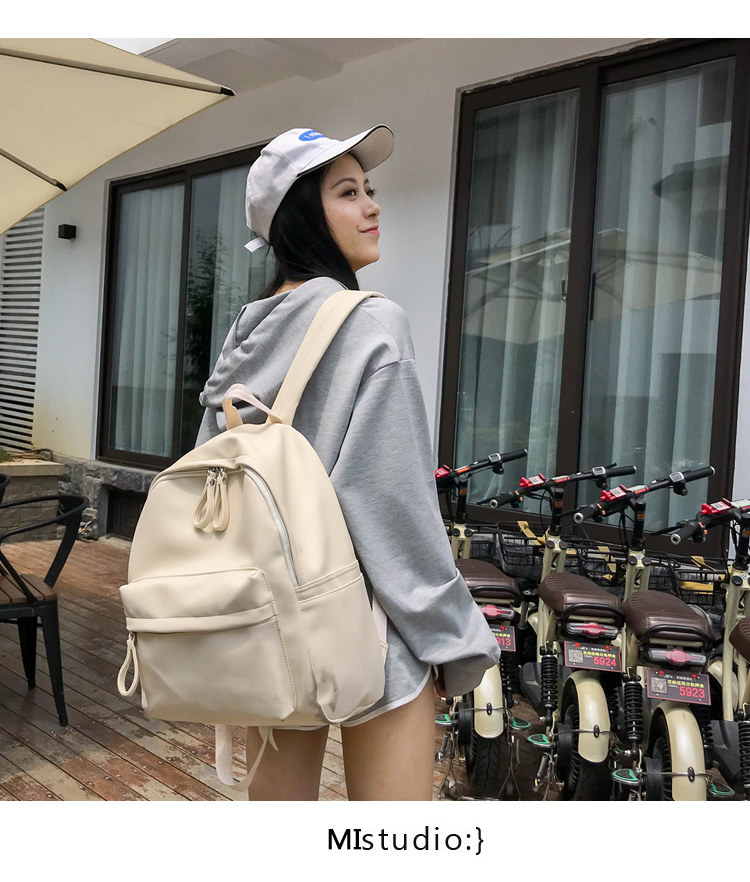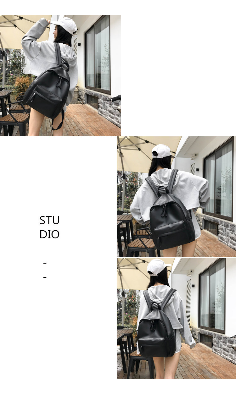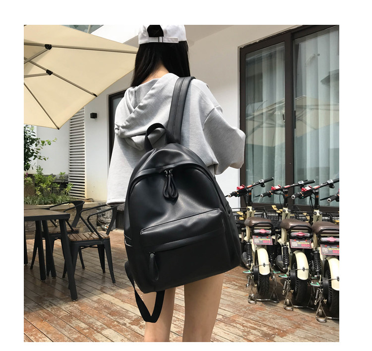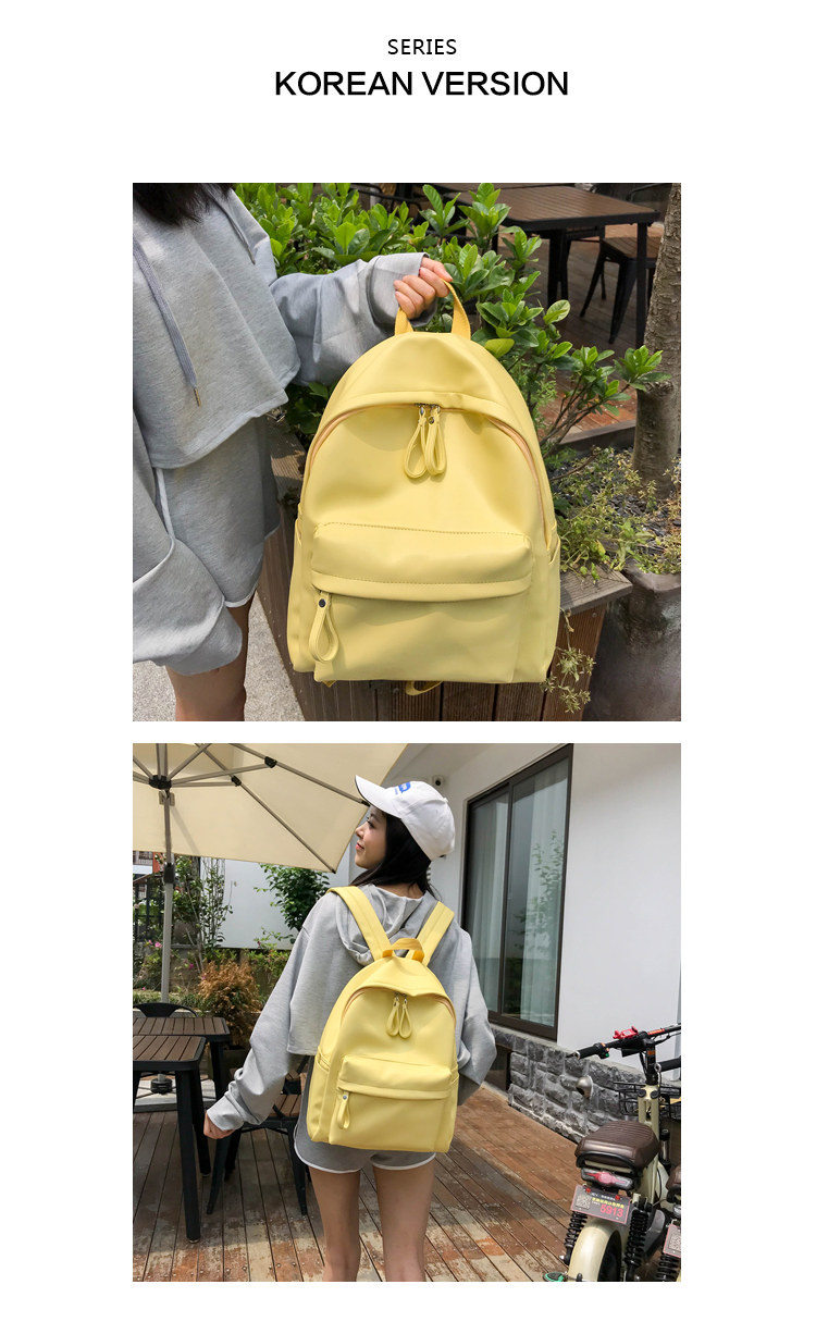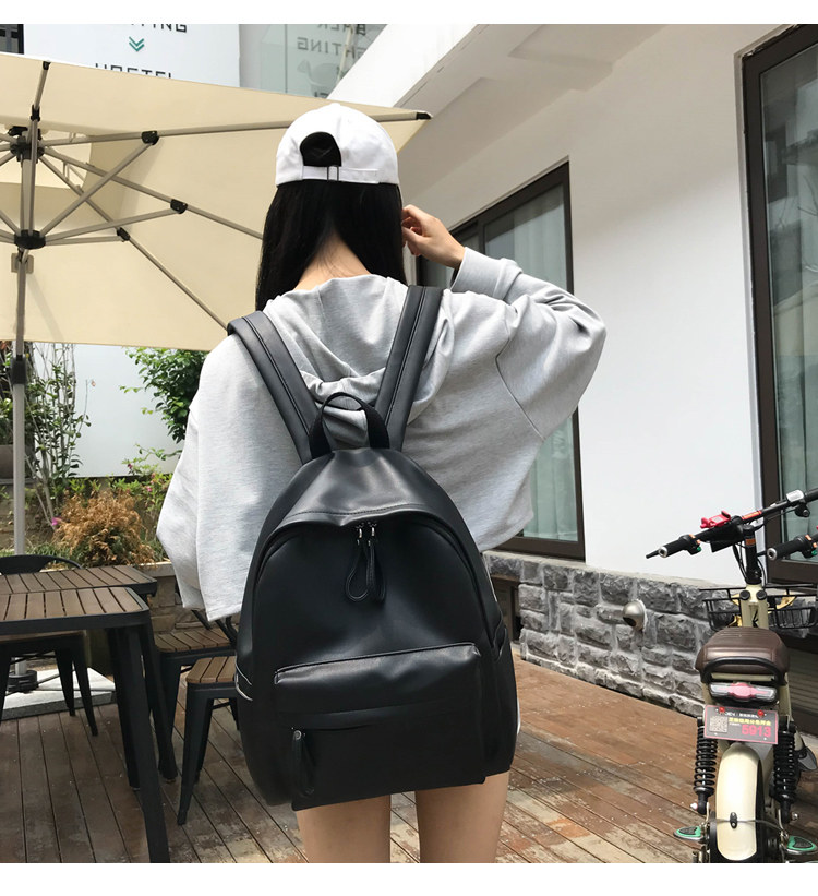 【有侧兜】【背面有拉链贴兜】纯色PU皮滑面双肩包,防水面料~