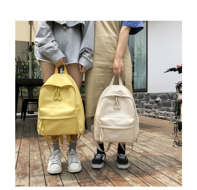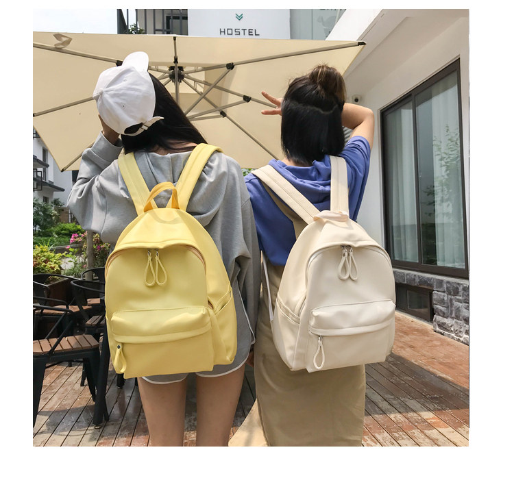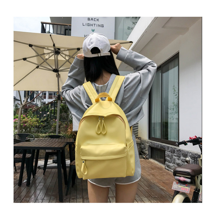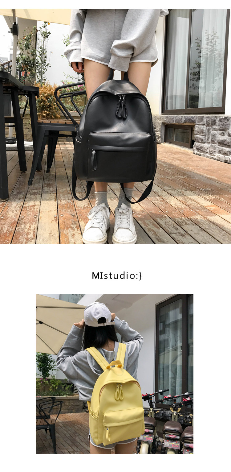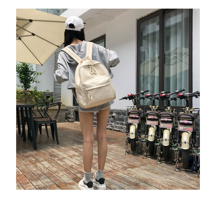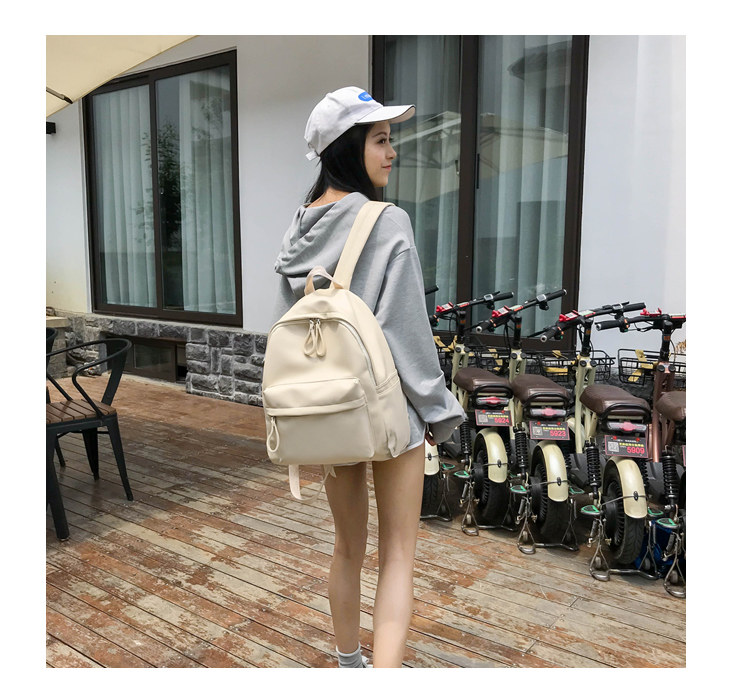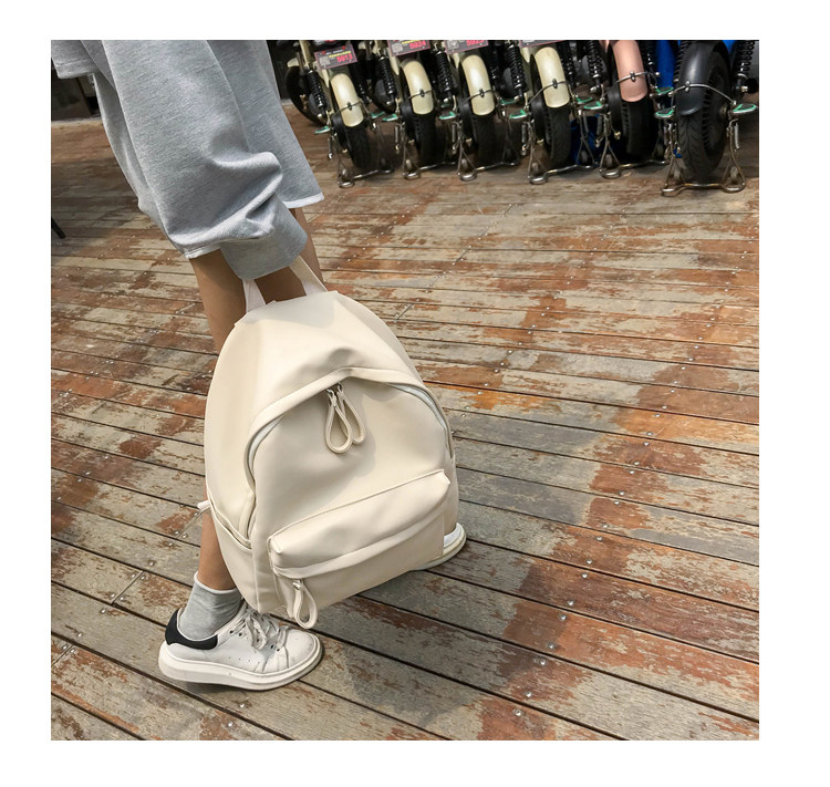 【有侧兜】【背面有拉链贴兜】纯色PU皮滑面双肩包,防水面料~