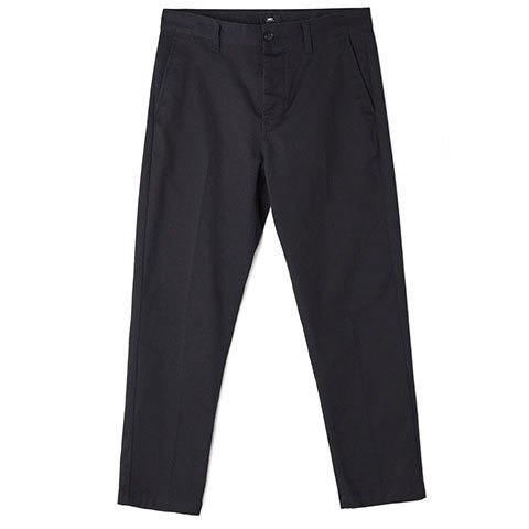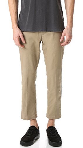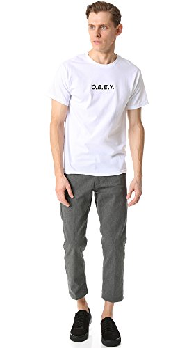 Studio : OBEY Apparel Publisher : OBEY Apparel Binding : Apparel Product Description The OBEY straggler standard fit flooded stretch twill pants with button and zipper fly closure at center font. Features slash pockets, a two-piece waistband with contrast interior details, back welt pockets and hard pressed crease along font and back. 0